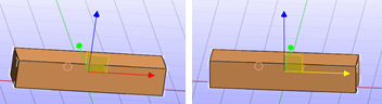 Moving the mouse cursor on an axis and the selected axis becomes highlighted. The object is movable to the highlighted direction.