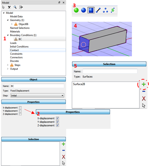 3. Because we will apply BC to the left side surface of the box, clicking Selecting Surfaces icon in the selecting toolbox.