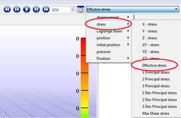 Select stress/Effective stress and you can see the effective stress result with the deformed shape.