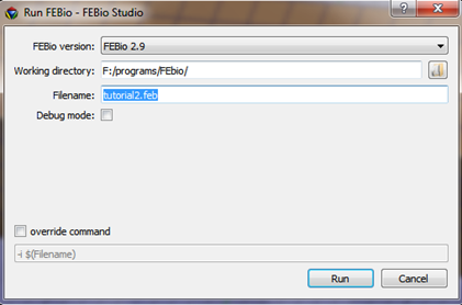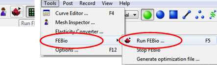 Click Run FEBio shortcut icon in the Main toolbar or Clock Tools/FEBio/Run FEBio.
