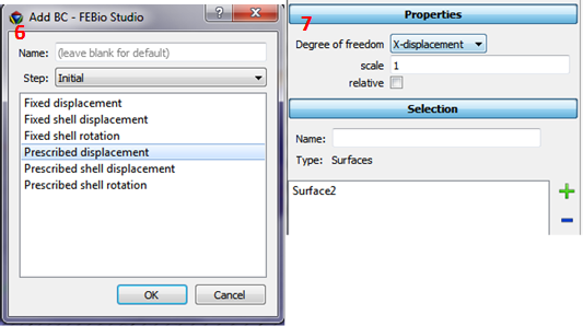 7. Select X-displacement for Degree of freedom and scale 1 and add the right surface of the box.