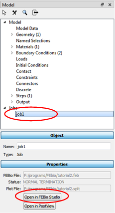 To see the result contour plot Click Open in FEBio Studio in the Properties panel.