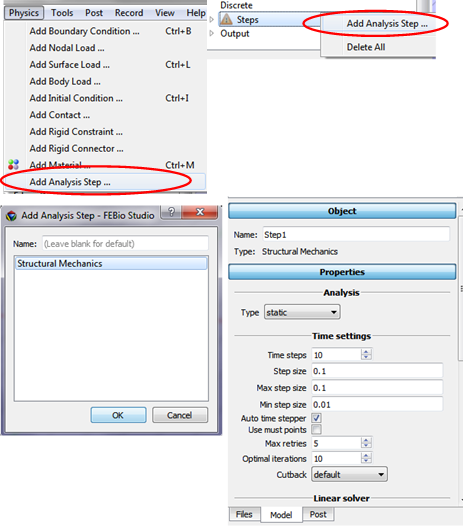 In the Main menu bar click Physics/Add Step or right-click the Steps in the Model view