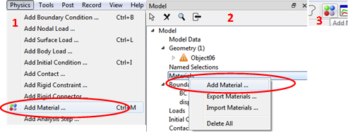 1. Using the Menu bar: Physics/Add Material.