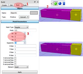 3. Assign the mesh size Nx = 20, Ny = 5, Nz = 5.
