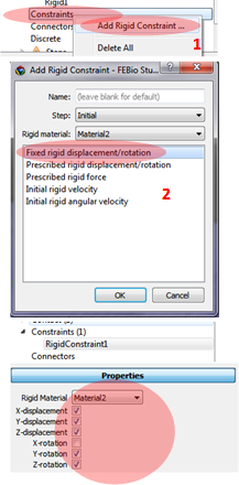 Assigning materials (Mooney-Rivlin) for the deformable body.
