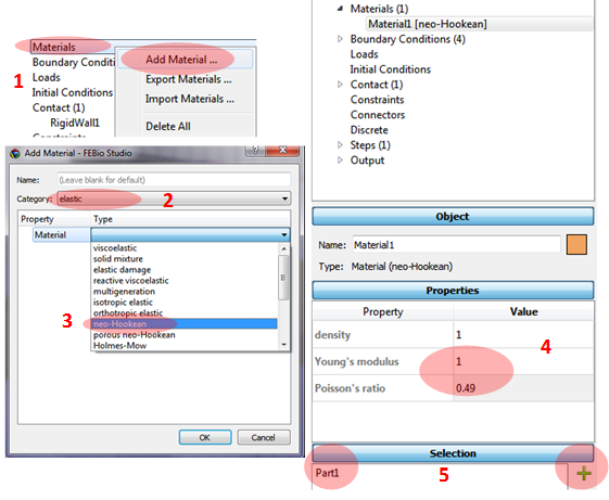 4. Applying parameters in the Properties panel (Young’s modulus = 1 and Poisson’s ratio = 0.49).