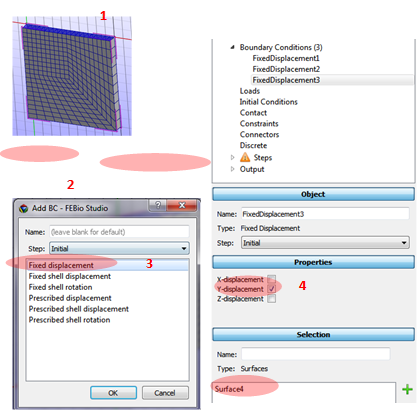 4. Using the surface selection tool, select y- and x+ surfaces