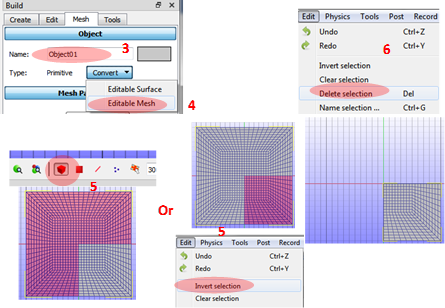6. Deleting mesh with the Delete Selection under the Edit menu.