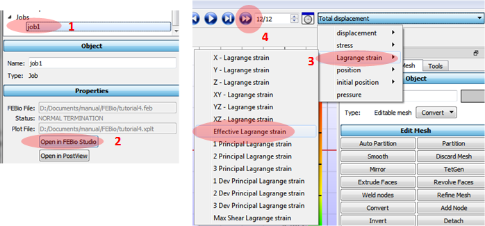 3. Select output at the right top: Lagrange strain/Effective Lagrange strain.