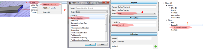 3. Select Step1 and applying 0, 0, -1 for traction.