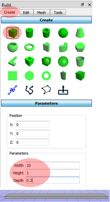 Defining the parameters: width 10, height 1, Depth 0.2.