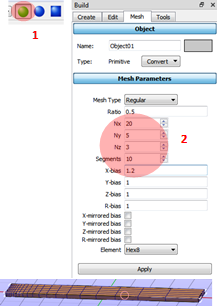 2. Applying Mesh Parameters: Nx = 20, Ny = 5, Nz = 3, X-bias = 1.2.