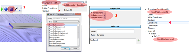 2. Click Boundary conditions/Add Boundary Condition at the Model panel and select Fixed displacement.